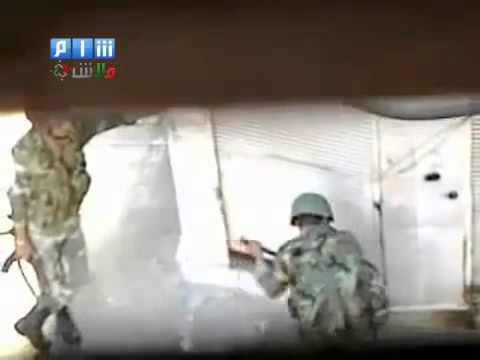 حماه - عناصر العصابة الأسدية تكسر باب أحد المحلات للسرقة